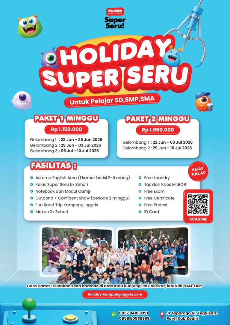 “Belajar di Mr.BOB Kampung Inggris, dilaksanakan dengan Sistem Asrama English Area”